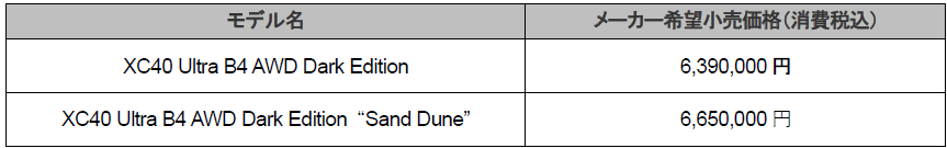 ボルボ・カー・ジャパン株式会社は、特別仕様車XC40 Ultra B4 AWD Dark Editionおよび、特別限定車XC40 Ultra B4 AWD Dark Edition “Sand Dune”(台数限定100台)を本日より発売開始します。