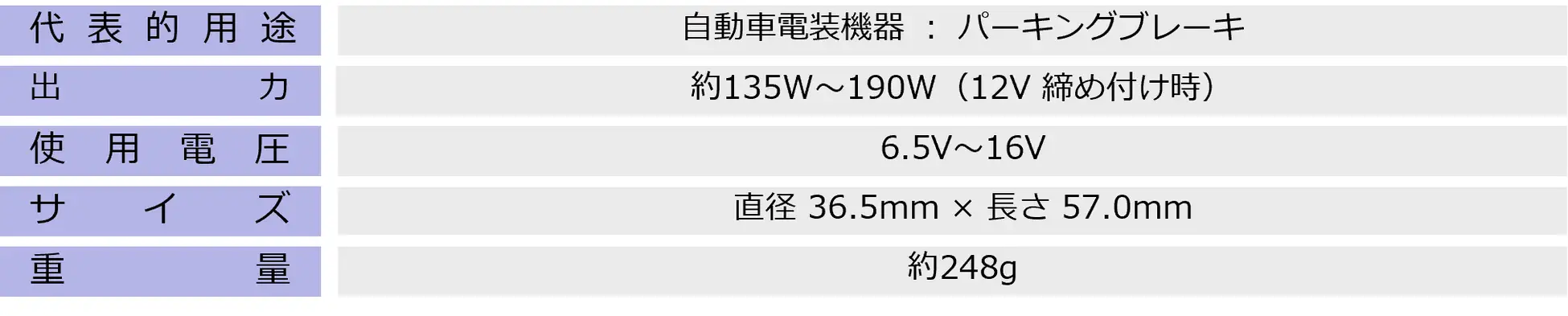 マブチモーター株式会社(本社:千葉県松戸市、代表取締役社長:高橋徹)は、自動車電装機器用モーター「RS-557VA」(代表的用途:パーキングブレーキ)を開発し、販売を開始いたしました。