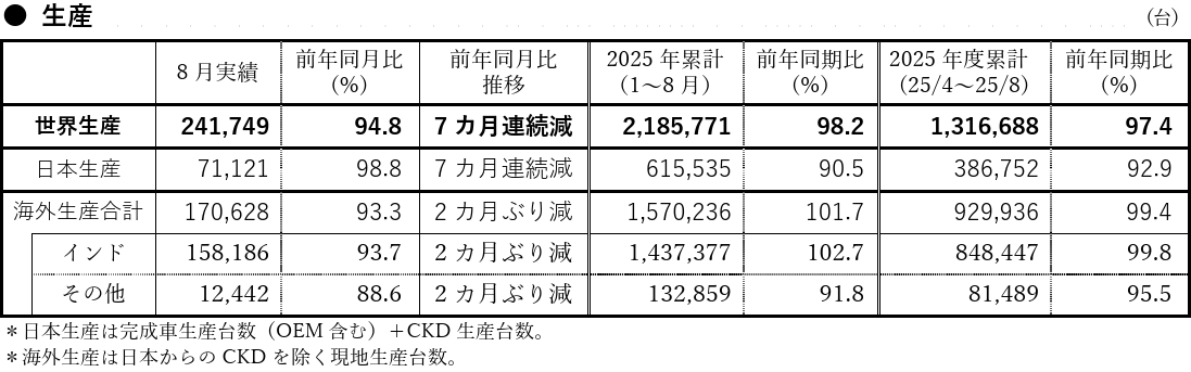 ・海外生産:インドやハンガリーなどが減少し、前年同月実績を下回った。