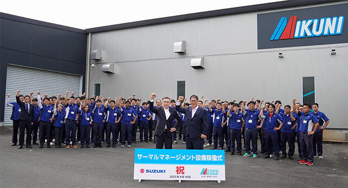 スズキは、この拠点を最大限に活用してミクニが持つ専門的な知見と技術力を活かし、両社一体での開発を加速させて、BEVの開発期間、開発工数が極小となる開発体制を実現し、技術開発全体でエネルギー極少化となるものづくりを目指してまいります。
