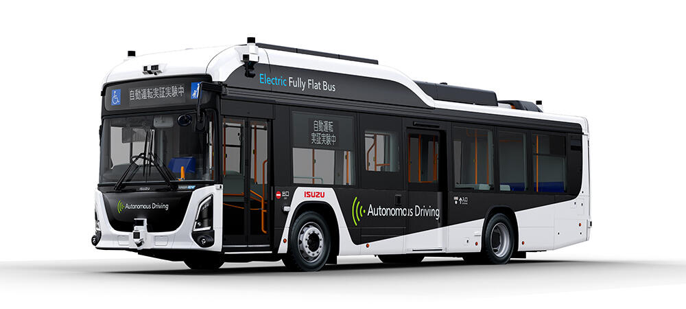国内初のBEVフルフラット路線バス「エルガEV」をベースに、新たに開発中の自動運転路線バスです。カメラ、LiDAR、ミリ波レーダーなど複数のセンサーによる周囲認識と、各コンポーネントを協調させる車両統合制御技術により、安全かつ安定した自動走行を実現しました。 BEVならではの静粛性と滑らかな加減速性能を生かして、お客さまに快適で安心感のある乗り心地を提供します。