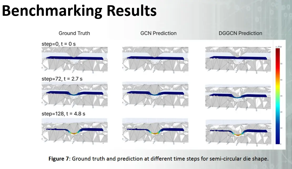 本研究では、深層学習技術を活用してこれらの課題を解決するため、業界初となる包括的なプレス成形シミュレーション用データセットを作成し、プレス成形シミュレーションのサロゲートモデルとしてGraph Convolutional Network(GCN)とDynamic Graph Convolutional Neural Network(DGCNN)の2つの深層学習アーキテクチャによるベンチマークでその有用性を実証しました。