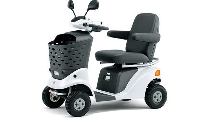 ※2 日常の移動手段として主に徒歩や自転車での外出が難しい高齢者の方にご利用いただいているハンドル形電動車いす。使用時の最高速度は時速1km~6kmの間で設定が可能で、道路交通法では歩行者として扱われます。