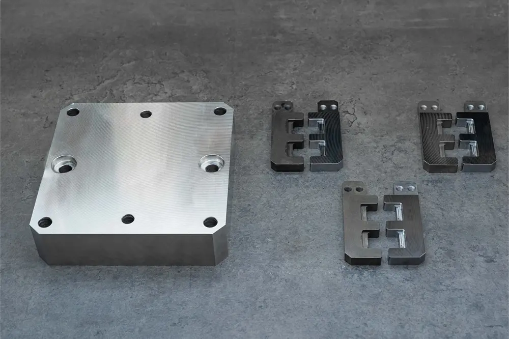SUS316Lは、耐食性や清浄性、非磁性が求められるマニホールド、治具ベースブロック、ホルダブロックなどの部品に適した材質で、医療・半導体・食品業界などで広く使用されています。また、焼入れ材3種は、ワークガイド、爪部品、受け部品など、摩耗の激しい箇所に適した材質で、自動車・電気・電子業界を中心に多くの分野で活用されています。さらに、meviyの熱処理(焼入れ)サービスを組み合わせることで、より高い耐摩耗性を実現することが可能です。