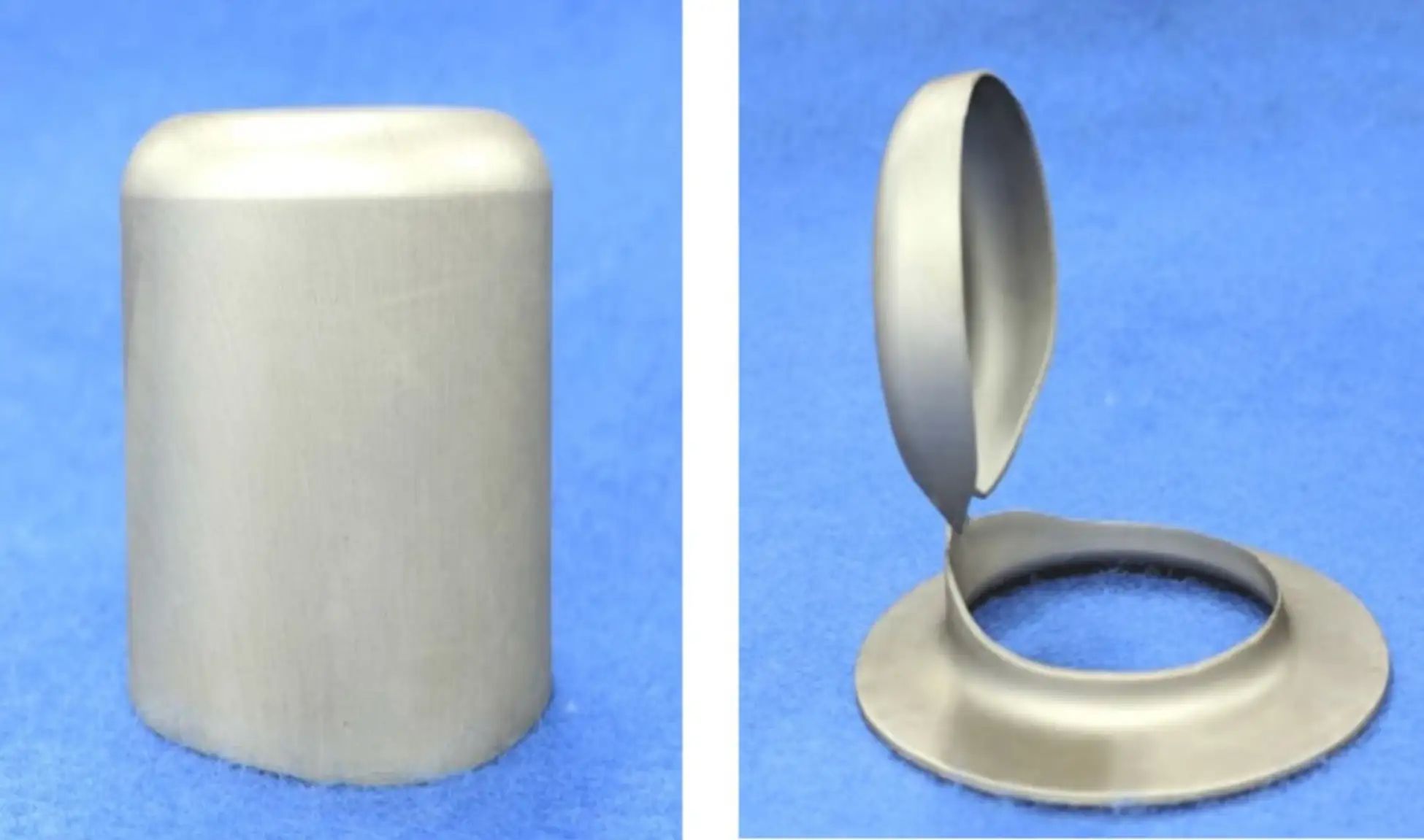 ![]() 写真1 円筒深絞り試験後の外観(左:SFA仕上、右:一般ナマシ仕上) |