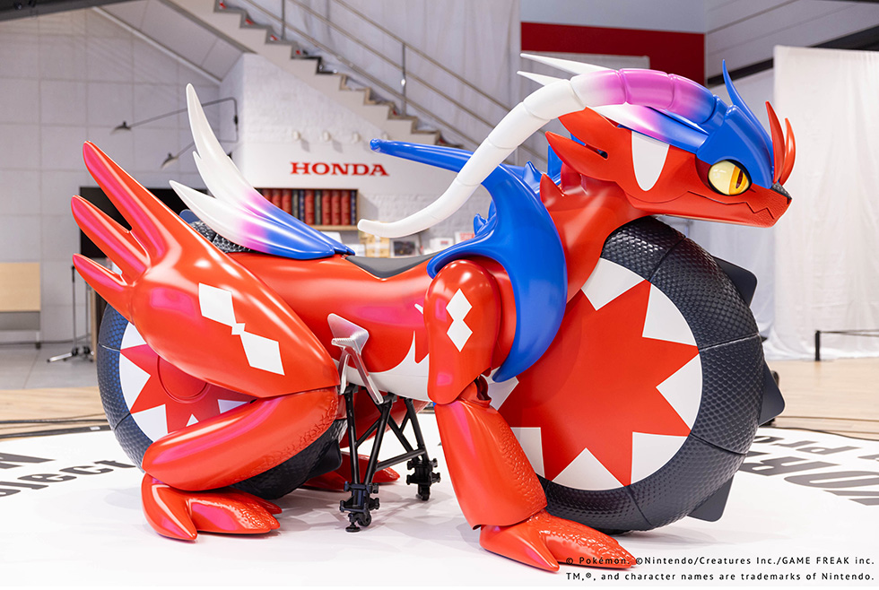 また、株式会社ポケモンの監修のもと、ゲーム『ポケットモンスター スカーレット』の中で出会うことができる「コライドン」を、重さ、大きさともにほぼ実物大で、形状を細部にまでこだわりミライモビリティとして再現した「ホンダコライドン」を展示、ライド体験の実施も予定しています。