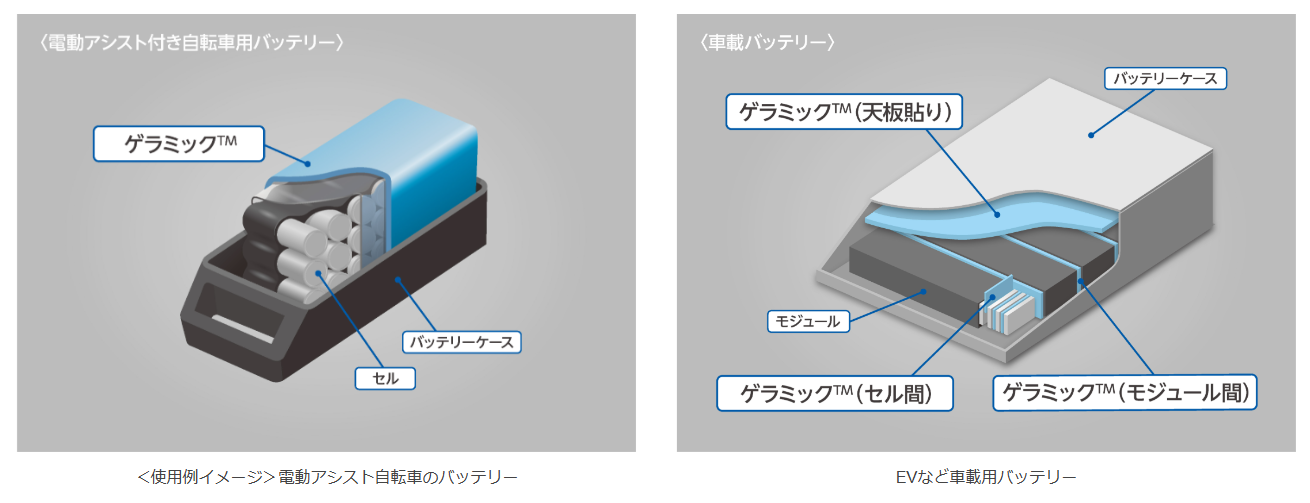 DIC、バッテリー発火の延焼を防ぐ吸熱パッド「GELRAMIC™(ゲラミック)」を開発