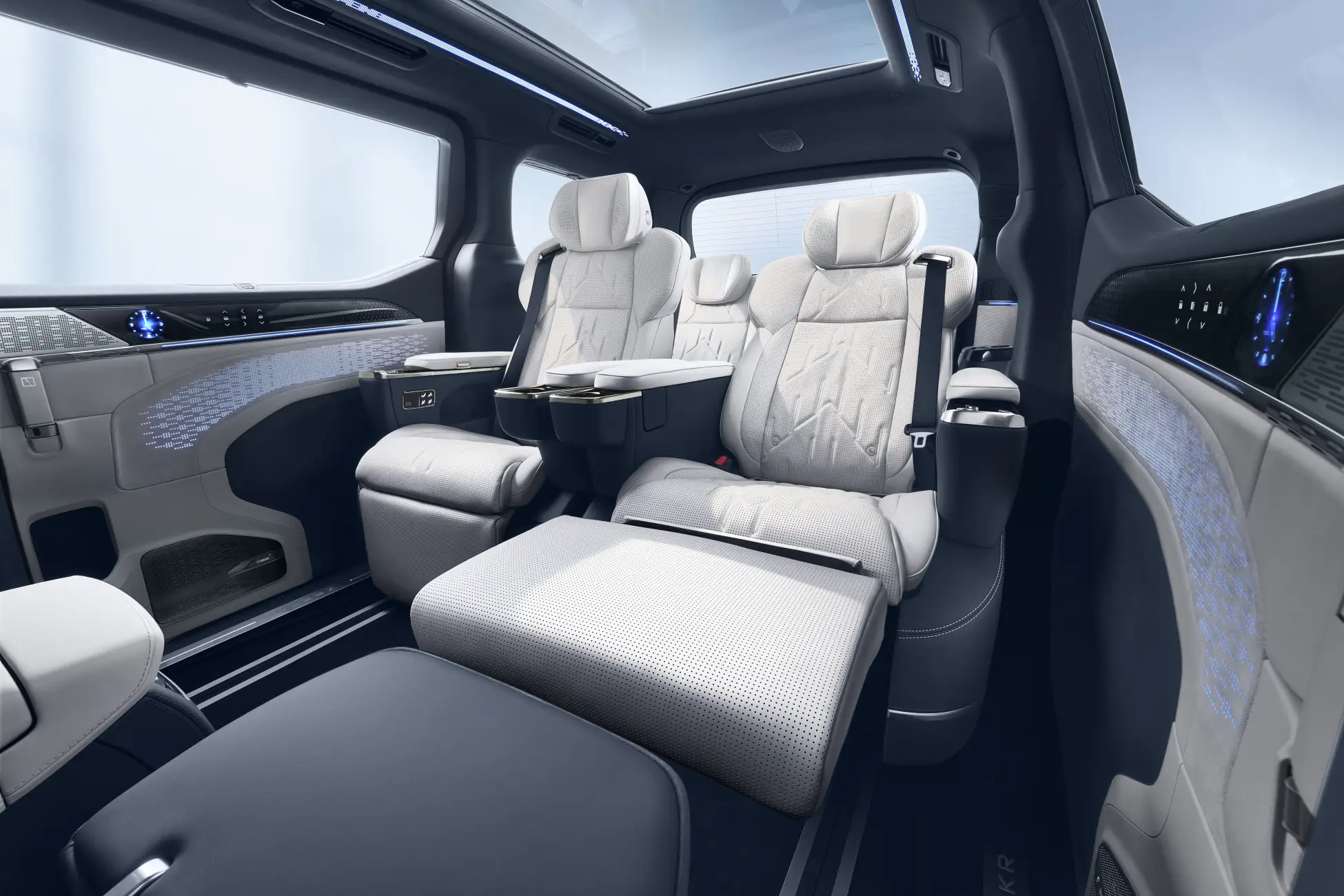 デザインは、元アウディのステファン・シーラフ率いるスウェーデンの「Zeekr Global Design Center(ジーカー・グローバル・デザインセンター)」が手がけ、洗練された北欧の流れを汲んだ車両に仕上げています。大型MPVでありながらCd値0.27という優れた空力性能を実現。存在感を放つ縦型フィン構造の大型フロントグリルや、1.47mに及ぶ一体型テールライトバーなど、プレミアムカーとしての風格と先進性を両立しています。