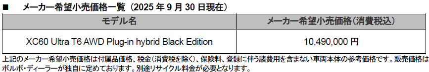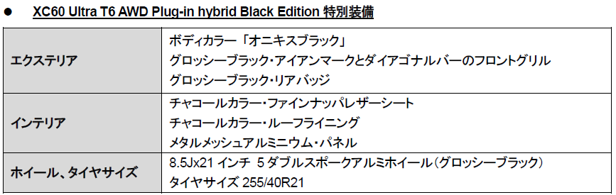 ボルボ・カー・ジャパン株式会社は、特別仕様車XC60 Ultra T6 AWD Plug-in hybrid Black Editionを本日より発売開始します。