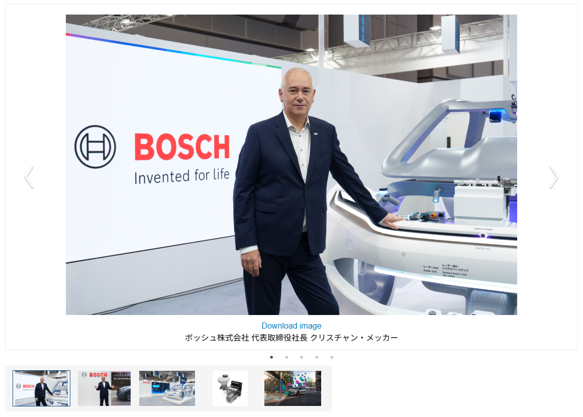 代表取締役社長のクリスチャン・メッカーは、ボッシュがブースにて展示する、ソフトウェア主導で開発した最新技術から、それを実現するハードウェアまでの幅広いソリューションについて説明したうえで、次のように語りました。「ボッシュは、ソフトウェアとハードウェアの双方において、他に類を見ない専門性と経験を有しています。この強みを最大限に活かし、お客様のニーズにこたえ、引き続き未来のモビリティを形成していきます。」