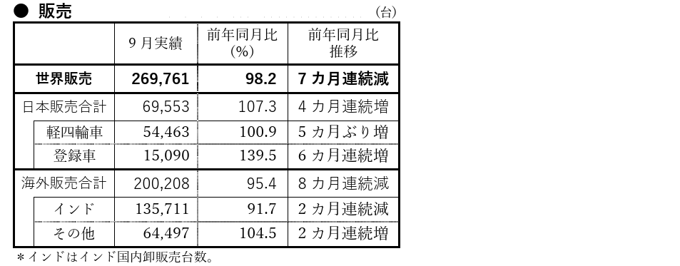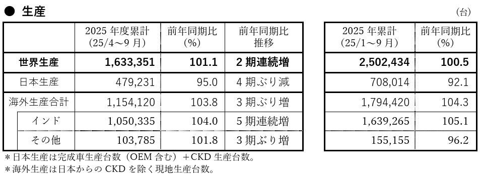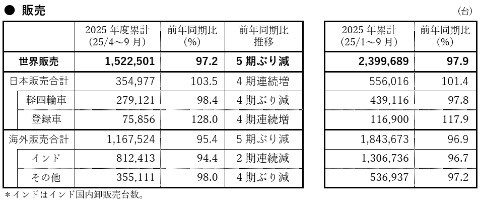 スズキ 2025年9月および4~9月 四輪車生産・販売・輸出実績
