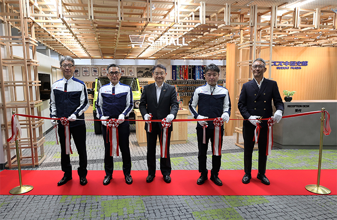 スズキ株式会社は本日、企業ミュージアム「スズキ歴史館」の1階に店舗「S-MALLスズキ歴史館ショップ」を整備しリニューアルオープンいたしました。このたびの開店を記念し同日に鈴木社長、石井副社長、浜松市 中野市長、リニューアルを手掛けた地元の設計工務店の有限会社アラン 中根社長などが出席し記念式典を開催しました。