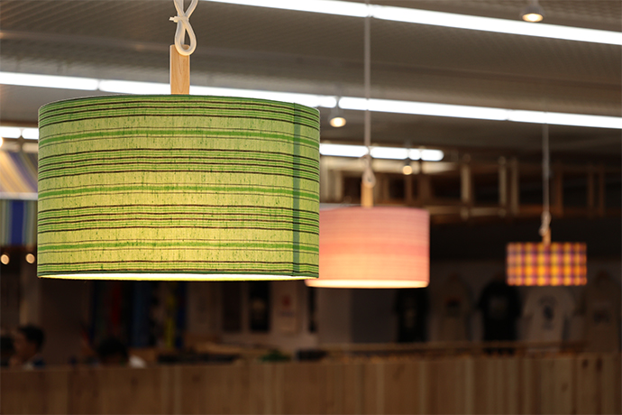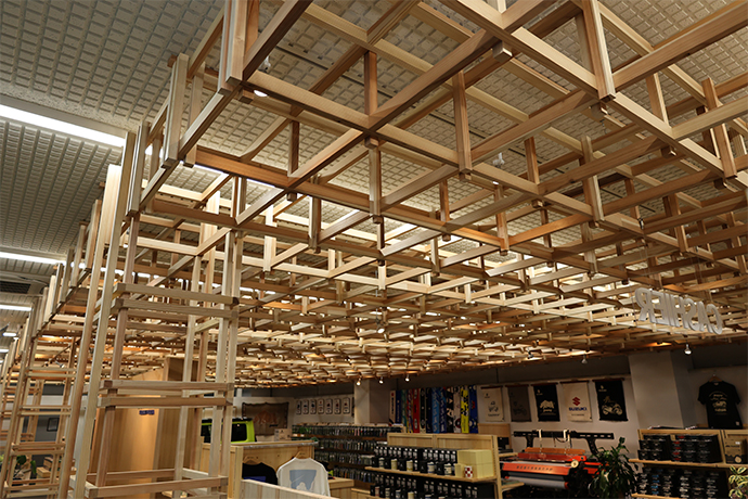 店舗には天竜材や遠州織といった浜松やスズキにゆかりのある素材を活用