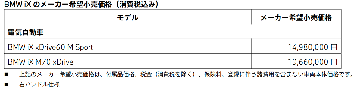 ビー・エム・ダブリュー株式会社(代表取締役社長: 長谷川正敏)は、次世代電気自動車「BMW iX(アイエ ックス)」の新型モデル(一部改良)を、全国のBMW 正規ディーラーにおいて、本日より注文の受付を開始する。納車は、本年11 月からを予定している。
