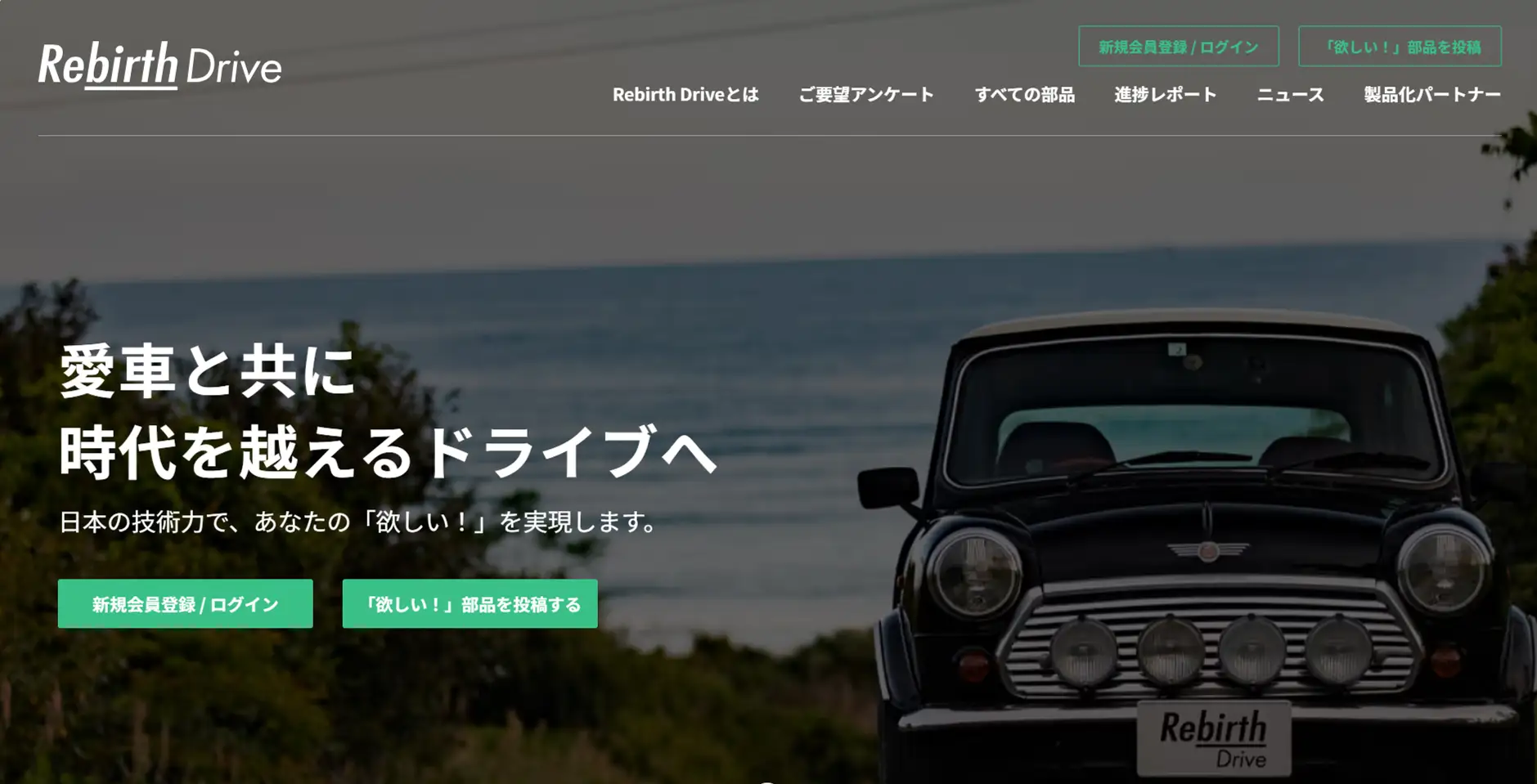 車の整備工場・旧車ユーザーの「欲しい!」の声を集めて入手困難な部品をカタチにする新サービス「Rebirth Drive」 ウェブサイト開設のお知らせ