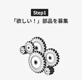 STEP1:欲しい部品の募集 インターネットを活用し、課題を抱える全国の整備工場・旧車ユーザー会員の皆さまから、「欲しい!」部品のリクエストを投稿して頂きます。 |