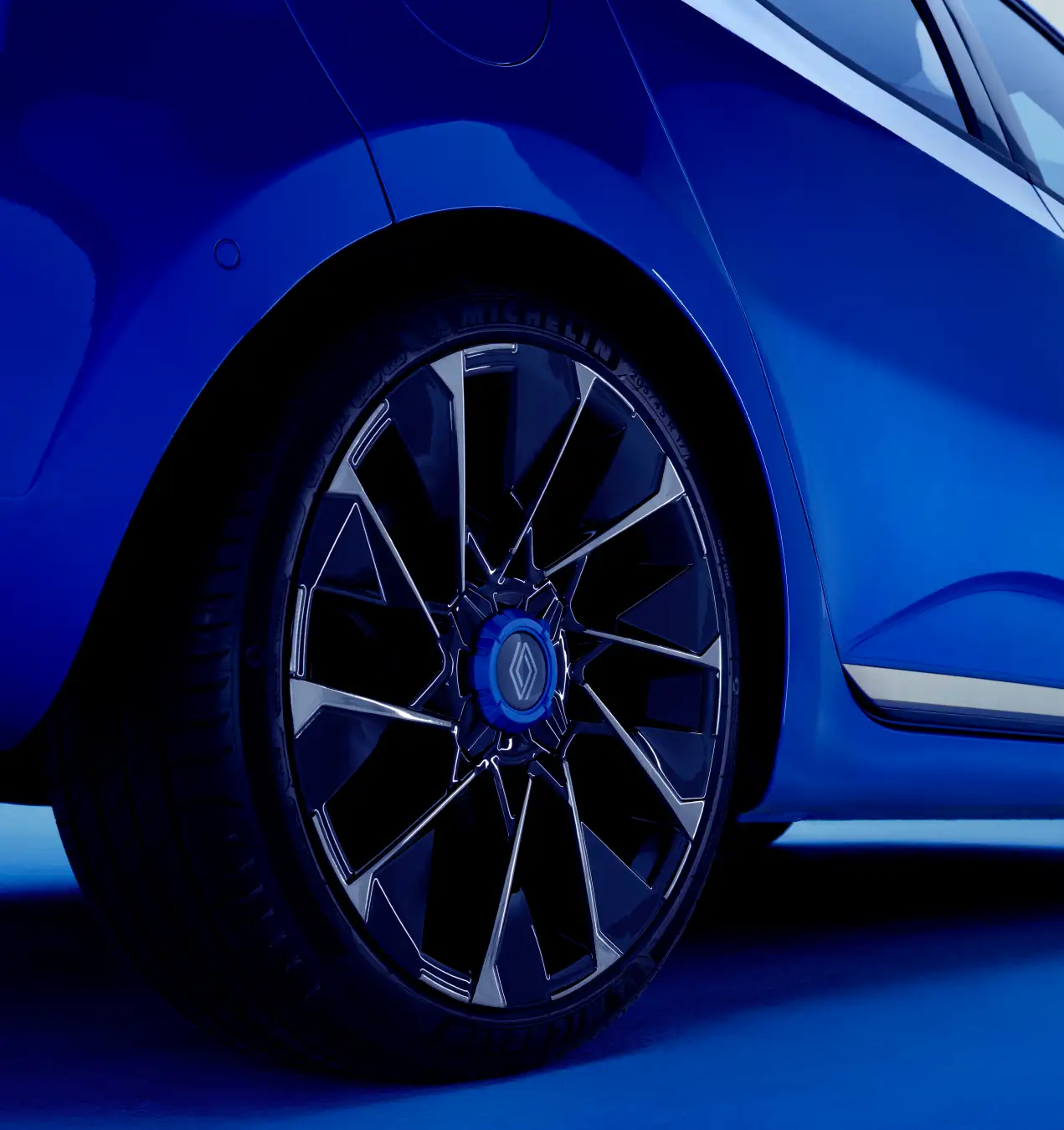 フロントフェンダーにはアルピーヌのエンブレムが取り付けられ、スポーティでエレガントなデザインの 専用アロイホイールは17インチです。