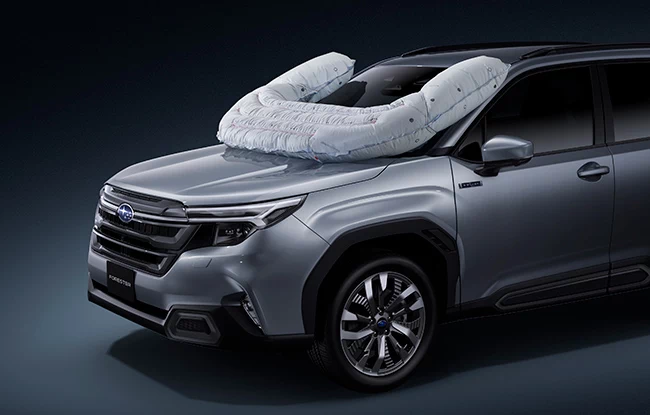 現行フォレスターでは、エアバッグの展開範囲を従来比400mm拡大することで、サイクリストの頭部衝突エリアをカバーし、事故時の致命傷リスクを大幅に軽減する設計となっています。