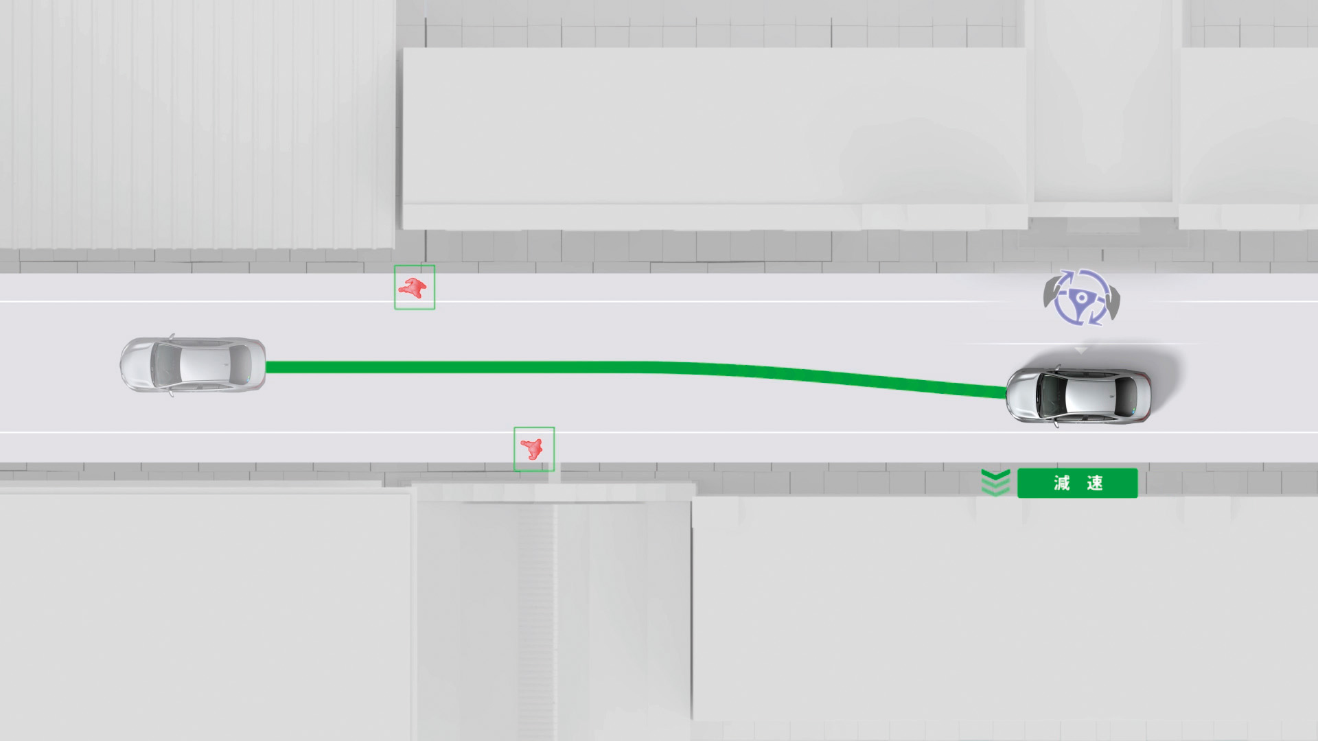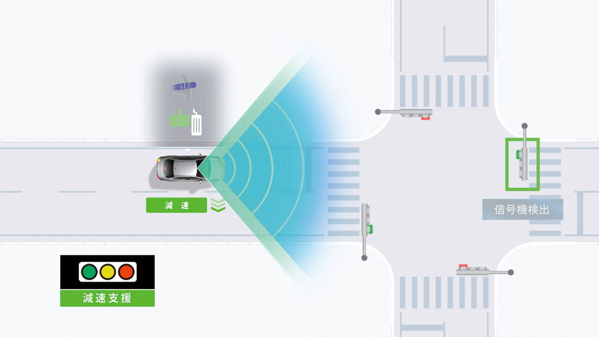 プロアクティブドライビングアシスト : 右左折時減速支援(作動イメージ) |
