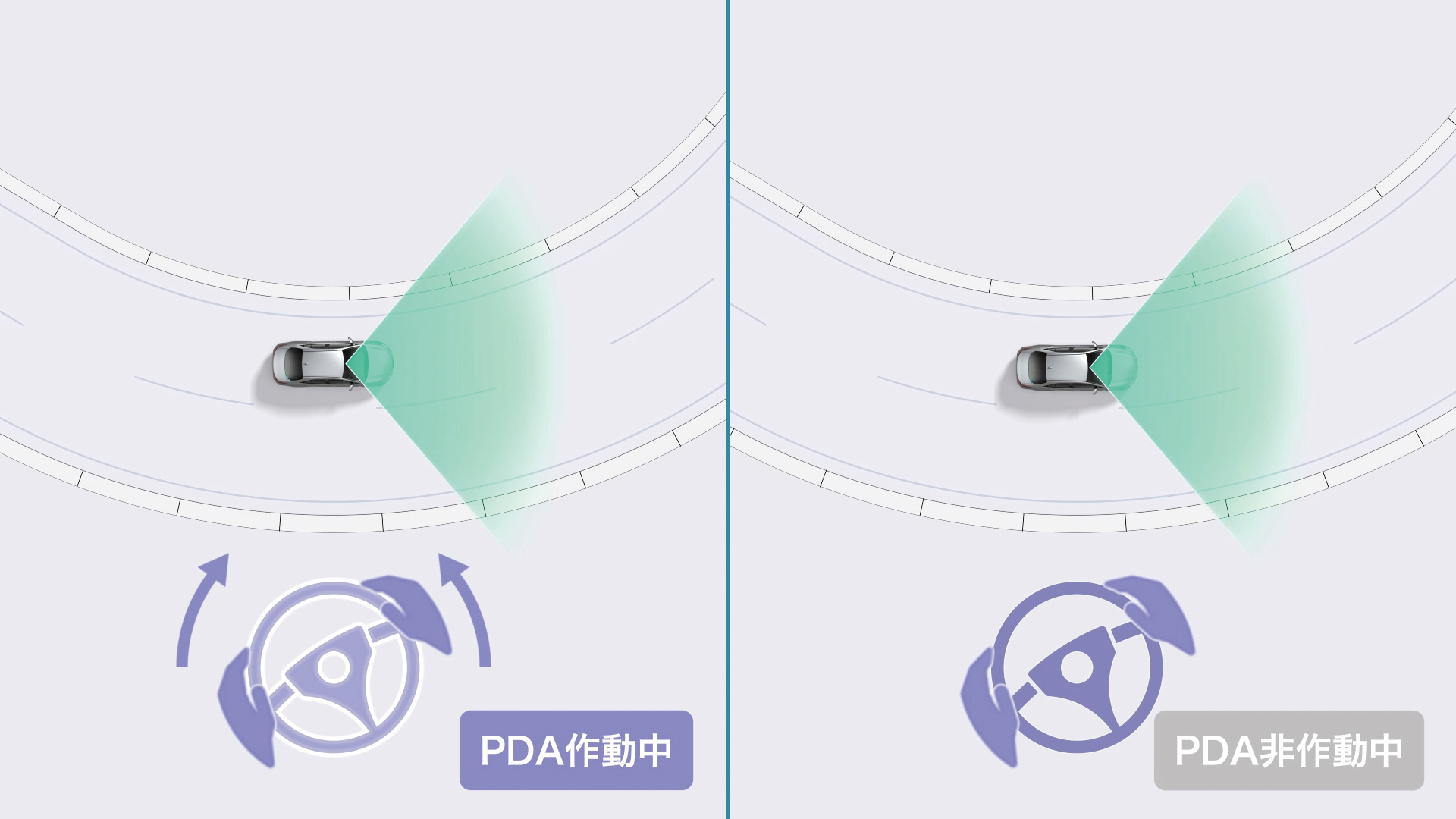 プロアクティブドライビングアシスト : 車線内走行時常時操舵支援(作動イメージ) |