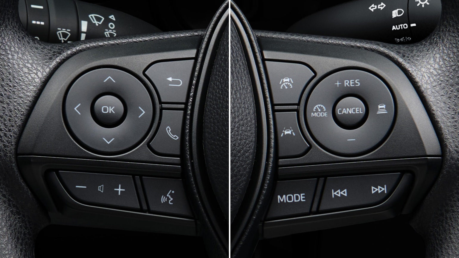 ステアリングスイッチ(マルチインフォメーションディスプレイ・オーディオ・レーダークルーズコントロール・レーントレーシングアシスト・ハンズフリー・音声認識) |