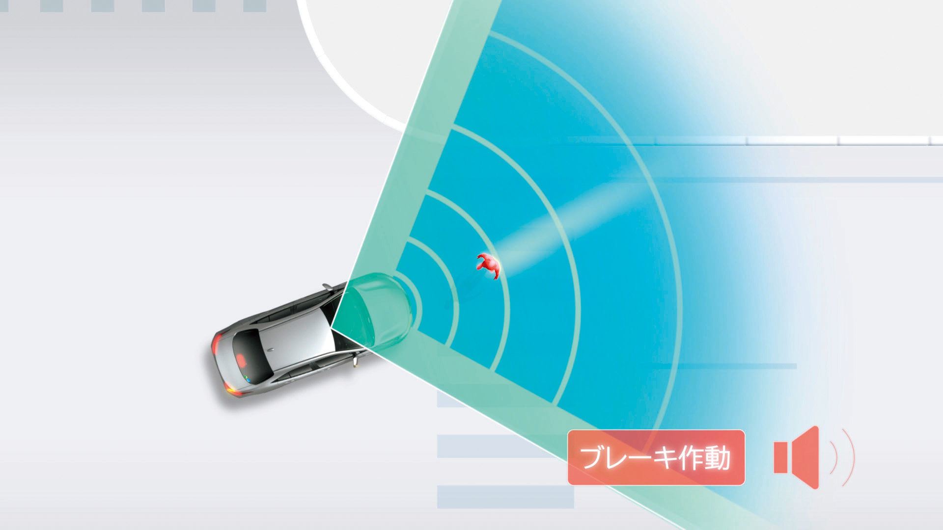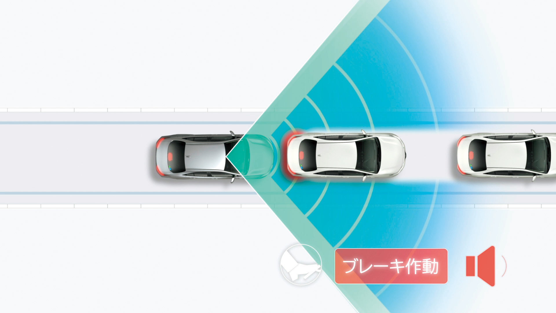 プリクラッシュセーフティ : 直進時の歩行者・自転車運転者検知機能(作動イメージ) |