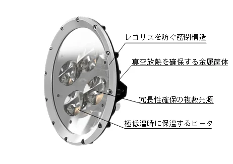 そこで、極低温環境下でも安定動作を維持する保温ヒータ、真空に対応する放熱構造、冗長性を 備えた複数光源など、高い信頼性を確保する技術開発に取り組んでいます。