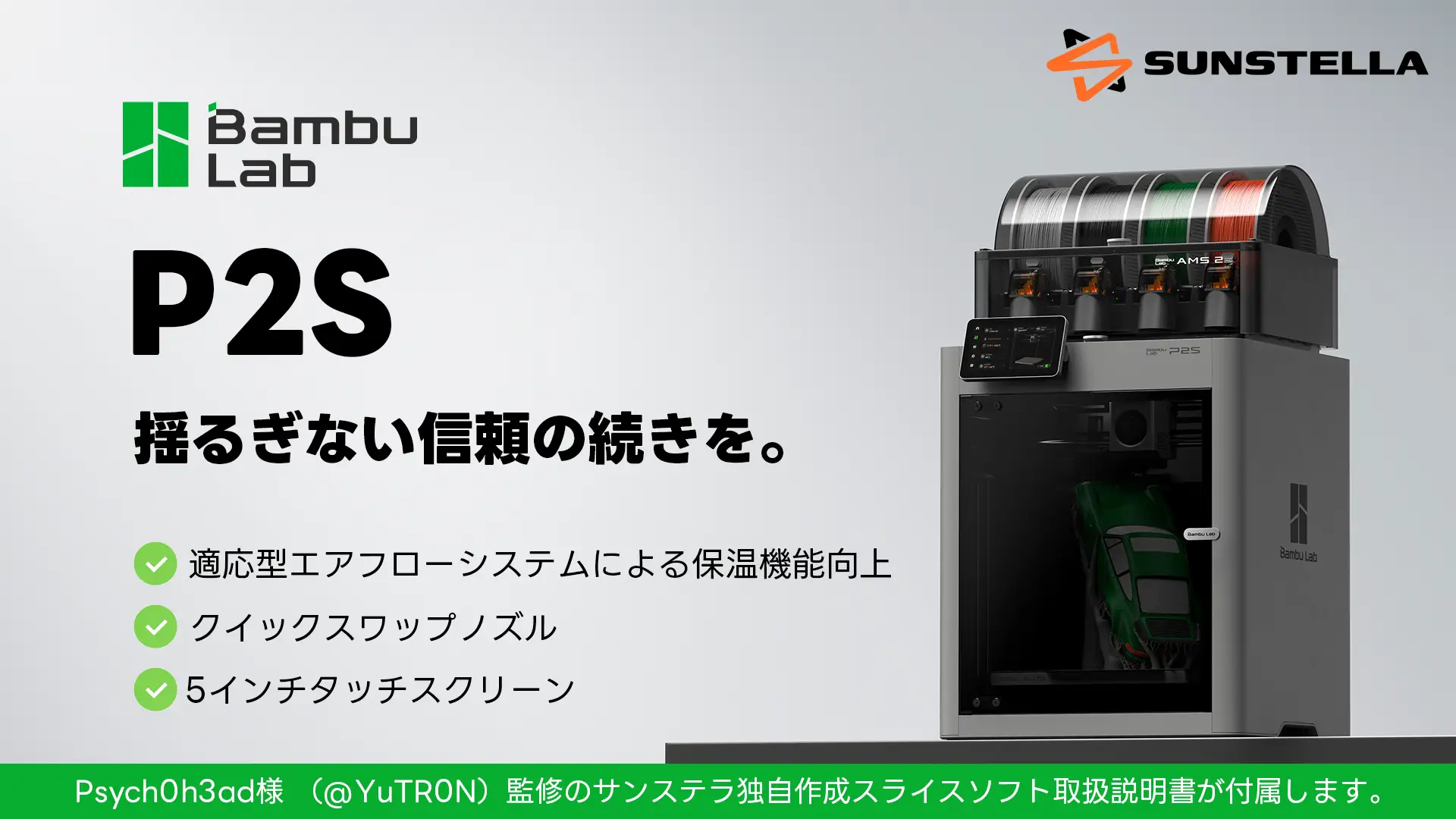 「揺るぎない信頼の続きを。」BambuLab P2S 3Dプリンター発売・独自取説同梱。 株式会社サンステラ