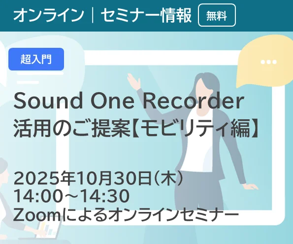 オンラインセミナー「Sound One Recorder 活用のご提案【モビリティ編】」を開催します。