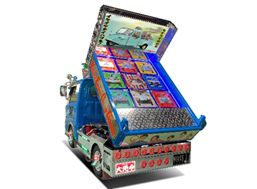 ・荷台には、歴代ハイゼットをモチーフにしたパネルを設置し、持ち上げると輪投げの的になる仕様を設定。加えて、手書きの吸入ガス発動機やミゼットのイラストでダイハツの歴史を表現