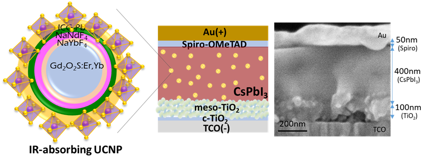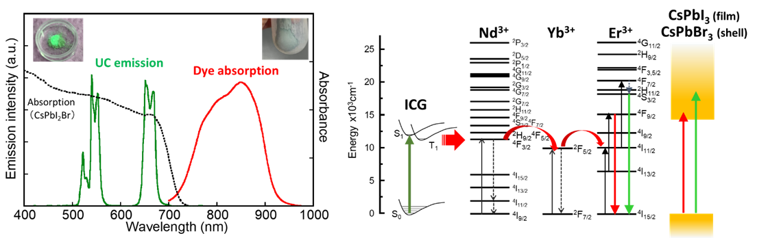 近赤外光、アップコンバージョン、ペロブスカイト太陽電池、色素増感、希土類ナノ粒子、有機無機ハイブリッド