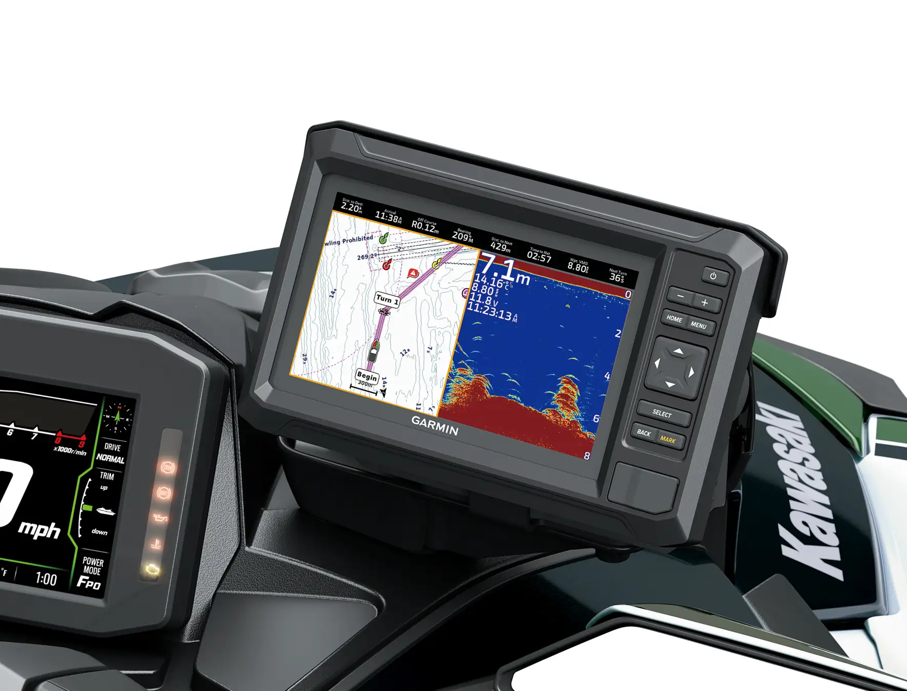 ・視認性に優れるガーミン製7インチナビ付き魚群探知機
