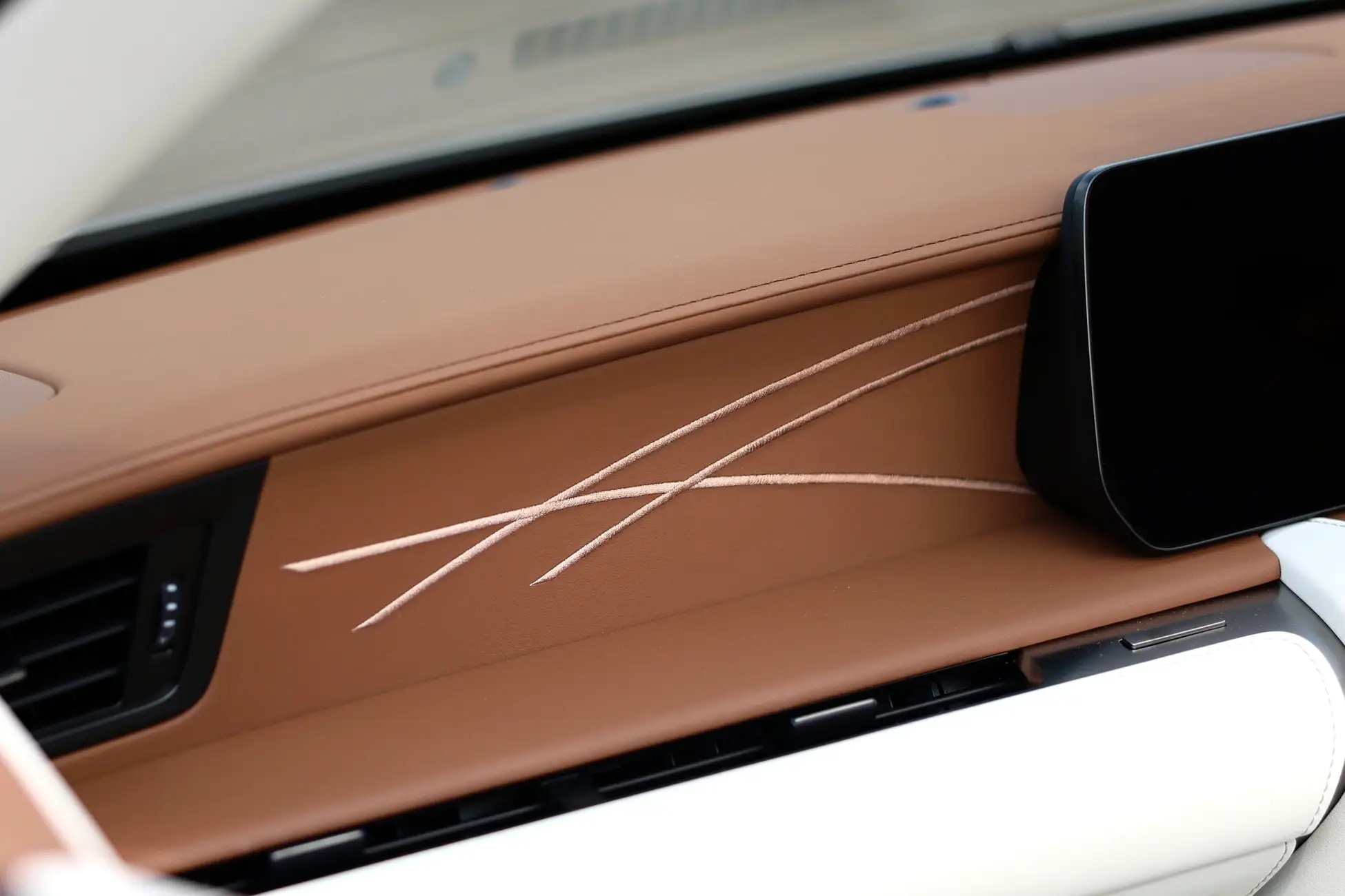 構想から約2年の歳月をかけ、デザインの美しさと品質の両面から検証を重ねてきました。耐候試験をはじめとする自動車特有の厳しい条件においても、高い基準を維持しながら、刺繍ならではの繊細な表現を実現。意匠性と安定性の両立を図りながら、レクサスとタジマがそれぞれ培ってきた知見と価値観を掛け合わせることで、業界を超えたイノベーションへとつながりました。