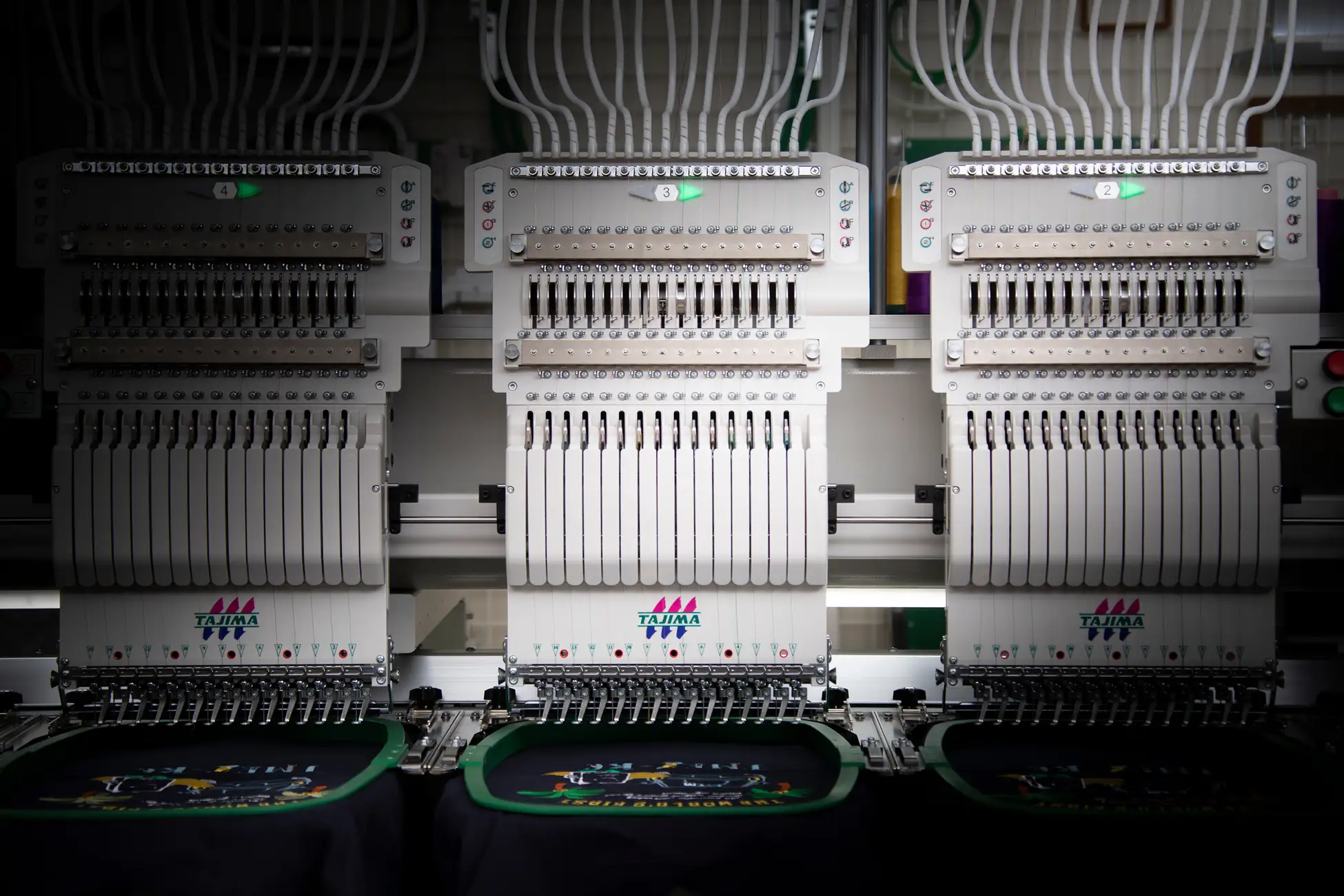 今回のグラデーション刺繍を支えているのは、タジマ独自のAI刺繍機です。微妙な色の変化を伴うステッチも安定して再現し、異なる質感の生地に対しても一つの刺繍データで対応可能。i-TMとDCP技術により、針ごとに最適な調整が自動で行われ、品質の均一化と生産効率の向上を同時に実現しています。厳格な基準を満たしながら、デザイナーの意図を忠実に再現する精緻さを備えた技術です。