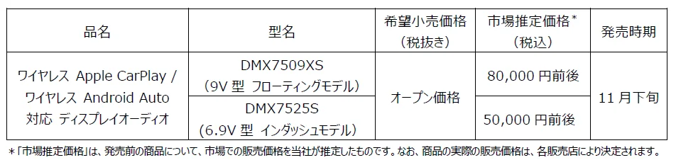 株式会社JVCケンウッドは、KENWOODブランドより、ディスプレイオーディオの2025年モデルとして、「DMX7509XS」(9V型 フローティングモデル)および「DMX7525S」(6.9V型 インダッシュモデル)の計2モデルを11月下旬より発売します。