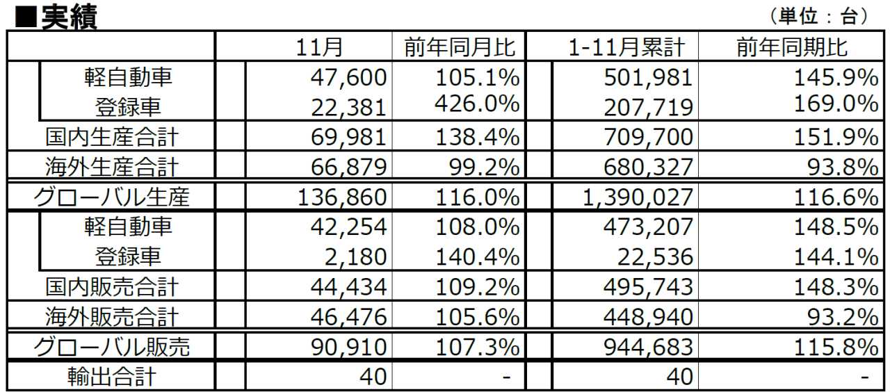 2025年11月 生産・販売・輸出実績【ダイハツ工業】