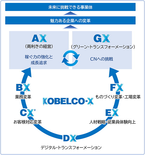 KOBELCOグループは今中期経営計画(2024~2026年度)において、「魅力ある企業への変革」を目標に掲げており、これを実現するための変革「KOBELCO-X」を推進しています。Kobenable® Steelが量産車用部品に採用されたことは「GX」の一例と考えています。