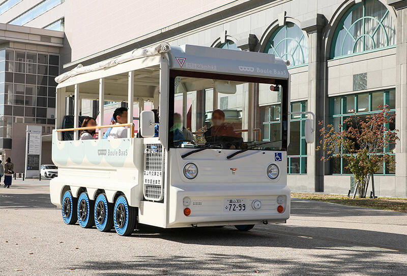 富山市とブリヂストンは、グリーンスローモビリティ運行事業に関する連携協定を2025年2月13日に締結※2し、公道での実証実験の準備を進めてまいりました。今回の実証実験は、バスタイプのグリーンスローモビリティ「Boule BaaS」(ブールバース)※3が運行されている富山駅北エリアで行われます。車両データ・走行データ・メンテナンス状況・利用者アンケートといった多角的なデータを収集することで、「Boule BaaS」と「AirFree」の組合せによる特性や機能、提供価値を富山市とブリヂストンで検証するとともに、2026年の社会実装に向けて活動を推進します。