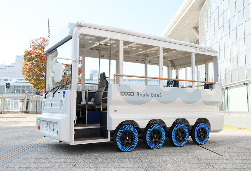 富山県富山市(以下、富山市)と株式会社ブリヂストン(以下、ブリヂストン)は、富山市が運営するバスタイプのグリーンスローモビリティに空気充填の要らない次世代タイヤ「AirFree」※1を装着し、公道での全国初となる実証実験を2025年11月8日より開始しました。「AirFree」は「地域社会のモビリティを支える」ことをミッションに、高齢化や過疎化、労働力不足といった地域交通に関する様々な課題の解決策として注目されているグリーンスローモビリティで安心・安全な移動を支えることを目指します。