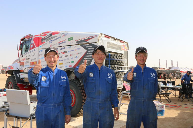 今日はタイヤをバーストさせたまま最終SSをゴールするHINO600を見て感激しました。ダカールのゴールはいつも胸が熱くなり涙が出ます。前半は順調でしたが、思い通りにはいかないのがダカールですね。今回の販売会社メカニックのみなさんにはそんなダカールを経験してもらえて良かったと思います。