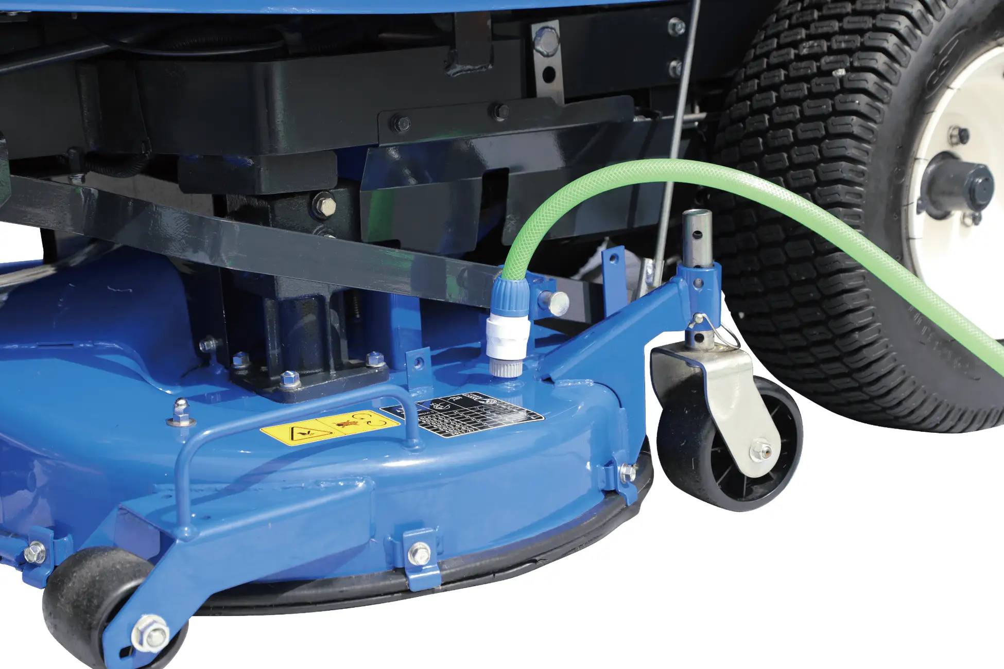 洗浄用コネクタにホースを繋ぎ、モーアデッキ内を洗浄することができます。 |