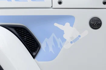 スノーアクティビティからインスピレーションを得た大胆なデザインがその魅力で、ボンネットにはスキーとスノーボードをモチーフにした、注目を集めること間違いのない大きなデカールを採用し、サイドフェンダーにはスキーヤーとスノーボーダーが疾走するシルエットを描いています。これらのデカールは、米国のプロダクトデザインチームと共同で制作しました。左リアガラスには、ジープの原点ともいえるWillys MB(ウィリス エムビー)と雪男が並んで歩くシルエットを施すなど、遊び心あふれるディテールも加えています。