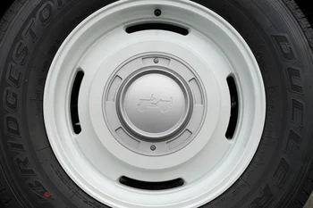 そして最大の特長は、印象の異なる2通りのスタイルを楽しむことができる2-Wayホイールです。ホイールデザインのひとつは、Willys MBのスピリットを受け継ぐコンセプトカー「Willys ’41(ウィリス フォーティーワン)」から着想を得たクラシカルな佇まいです。一方、シルバーの大型キャップを装着すると、力強い存在感を放ちます。いずれのセンターキャップにも、Willys MBのシルエットが刻印されています。