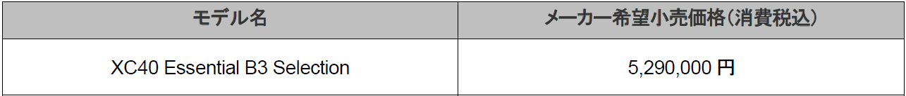 ボルボ・カー・ジャパン株式会社は、特別限定車XC40 Essential B3 Selectionを100台限定で本日より発売開始します。