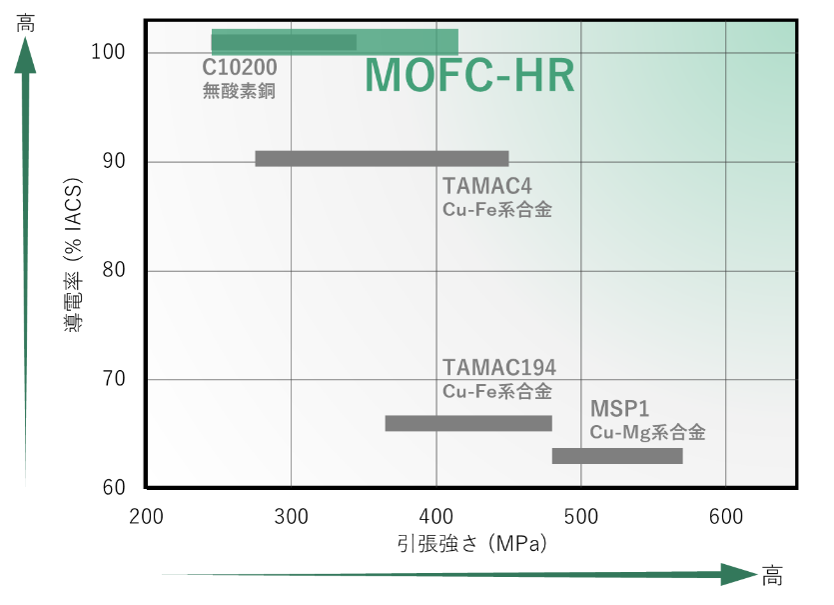 図2:MOFC-HRと他銅材料との特性比較 (画像をクリックして拡大イメージを表示) |