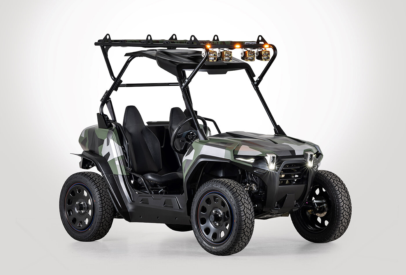畑地や不整地など、多様な路面環境での敏捷な移動性とスマートな使い勝手を提供する2人乗り電動モビリティです。 本展示会では、ハードカーゴ株式会社による特別架装(ワークキャリア等)を施し、エルフミオの荷台に積載。目的地に到着した後、もっと「奥」へと踏み込むための頼れる相棒としてのスタイルを提案します。