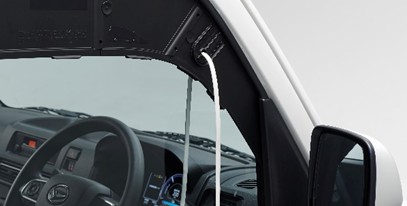 ・付属の外部給電アタッチメントを使用すれば、フロントドアとドアガラスを閉めた状態でも車外に電源コードを引き出して給電が可能