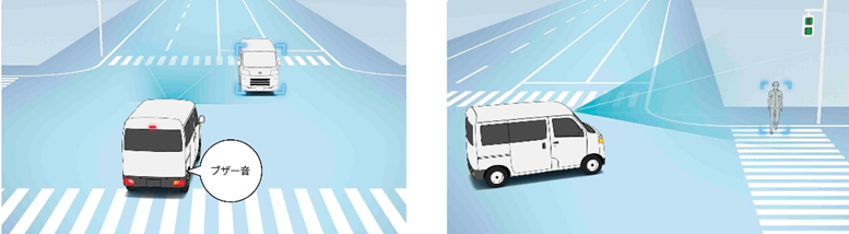 ・具体的には、横断中の自転車や、交差点での右折時に対向方向から直進してくる車両や右左折時に対向方向から横断してくる歩行者も認識可能に