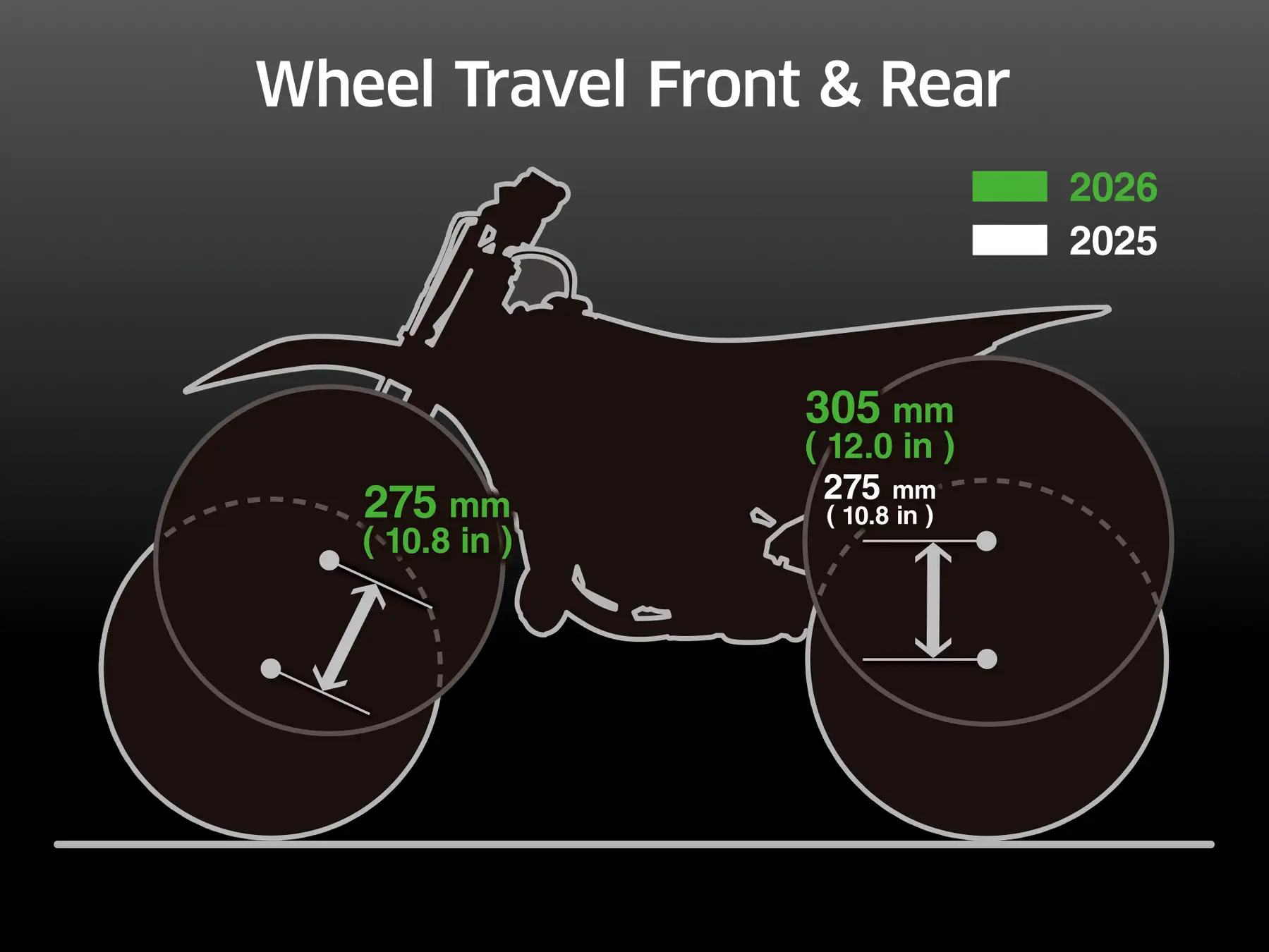 ※KX85のみリヤホイールトラベル量は従来モデルと同様の「275mm」となっています。 |