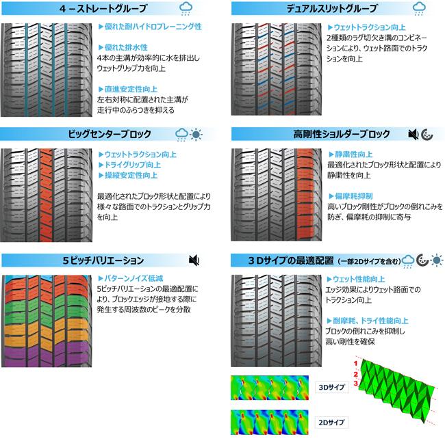 独自配合のコンパウンドにより優れたウェットグリップ・耐摩耗・低転がり抵抗性能を実現 |